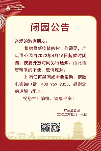 閉園公告